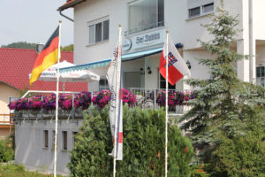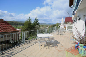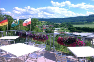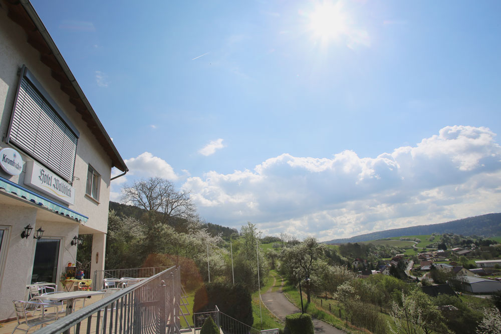 Bei schönem Wetter sitzt man auf der herrlichen Terasse und genießt die malerische Landschaft des Werratals.